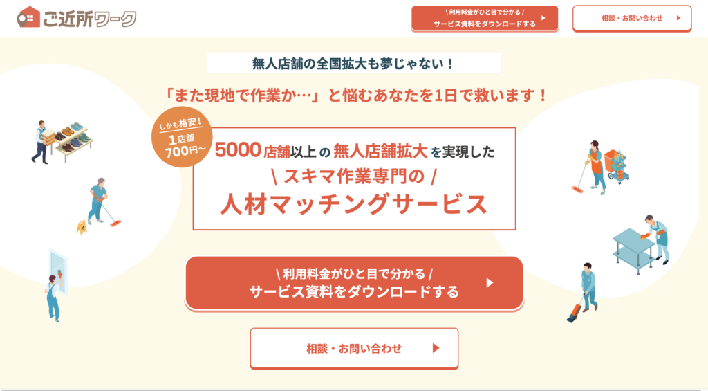 https://gokinjowork.jp/corporation/rounder-shop無人店舗清掃サービス、ご近所ワ…